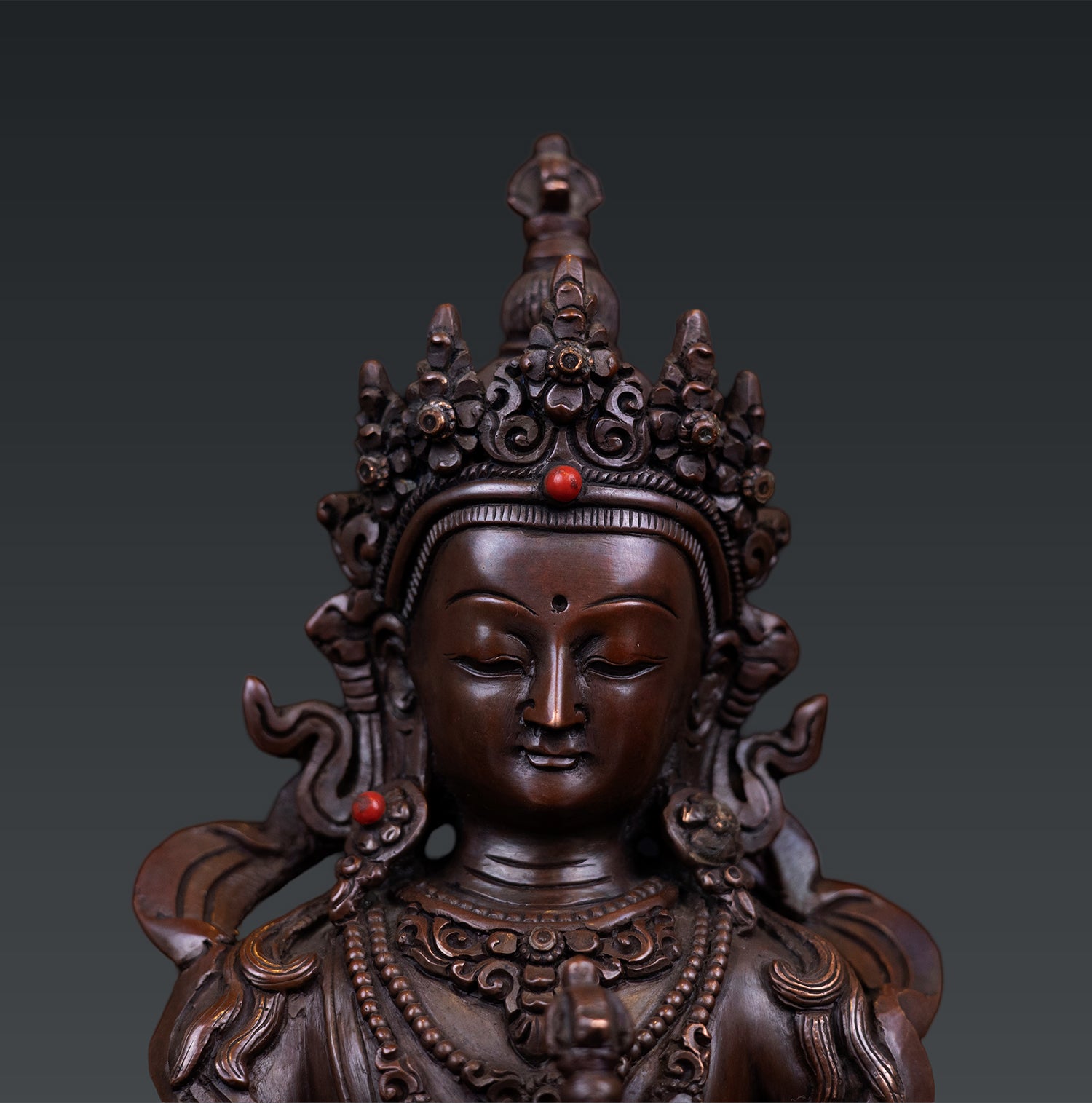 This Beautiful Hand Craved Tibetan Buddhism Lord Vajrasattva Oxide Rare Copper Statue made in Nepal.