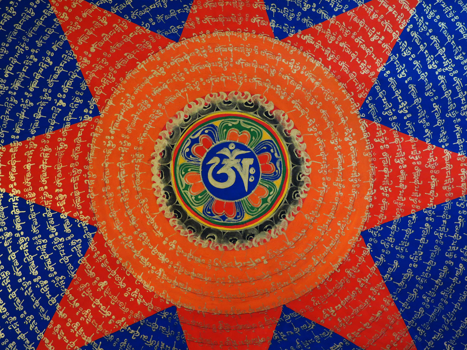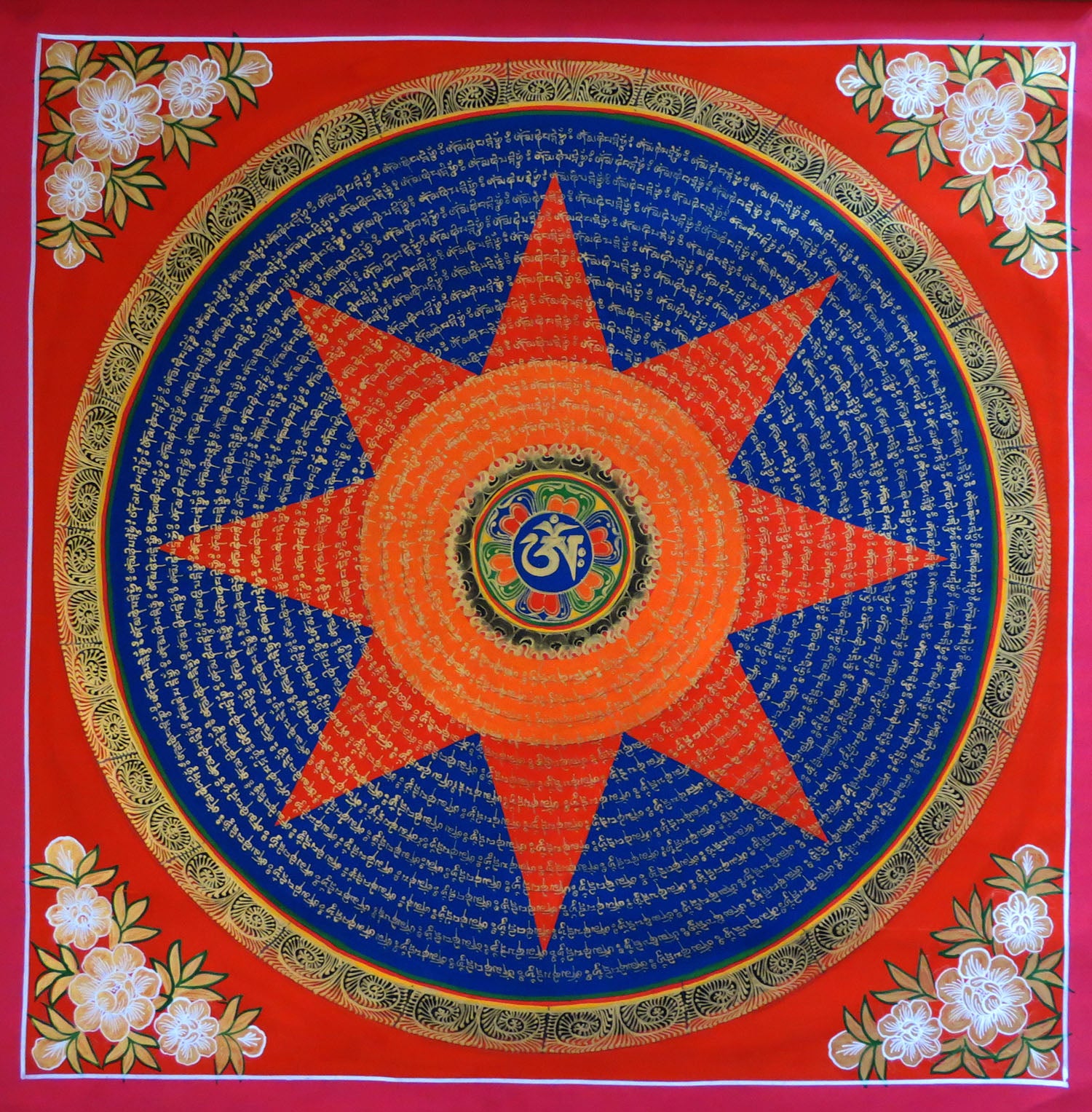 Tibetan Buddhism Om Mani Padme Hum Mantra Mandala Star Lama Handwritten Painting Thangka Art Nepal free