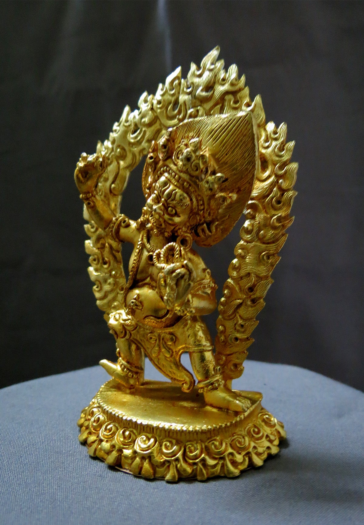 This Beautiful Handmade Tibetan Buddhism God Vajrapani Gold Plated Copper Statue made in Nepal.