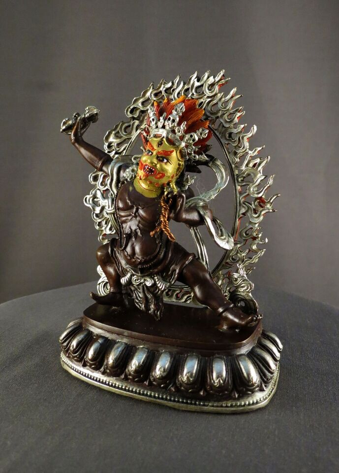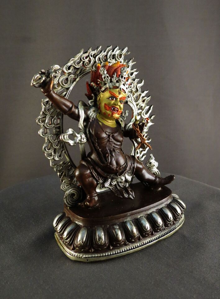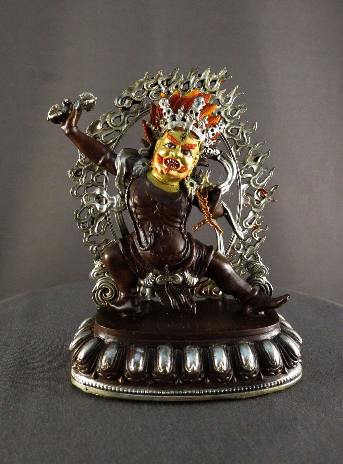 This Beautiful Handmade Tibetan Buddhism Gold Face Painting God Vajrapani Copper Oxide Silver Plated Statue made in Nepal.