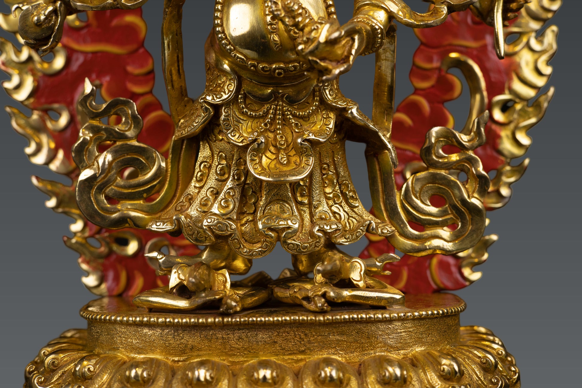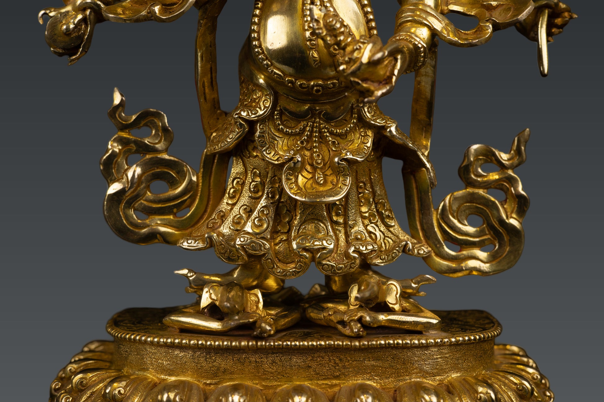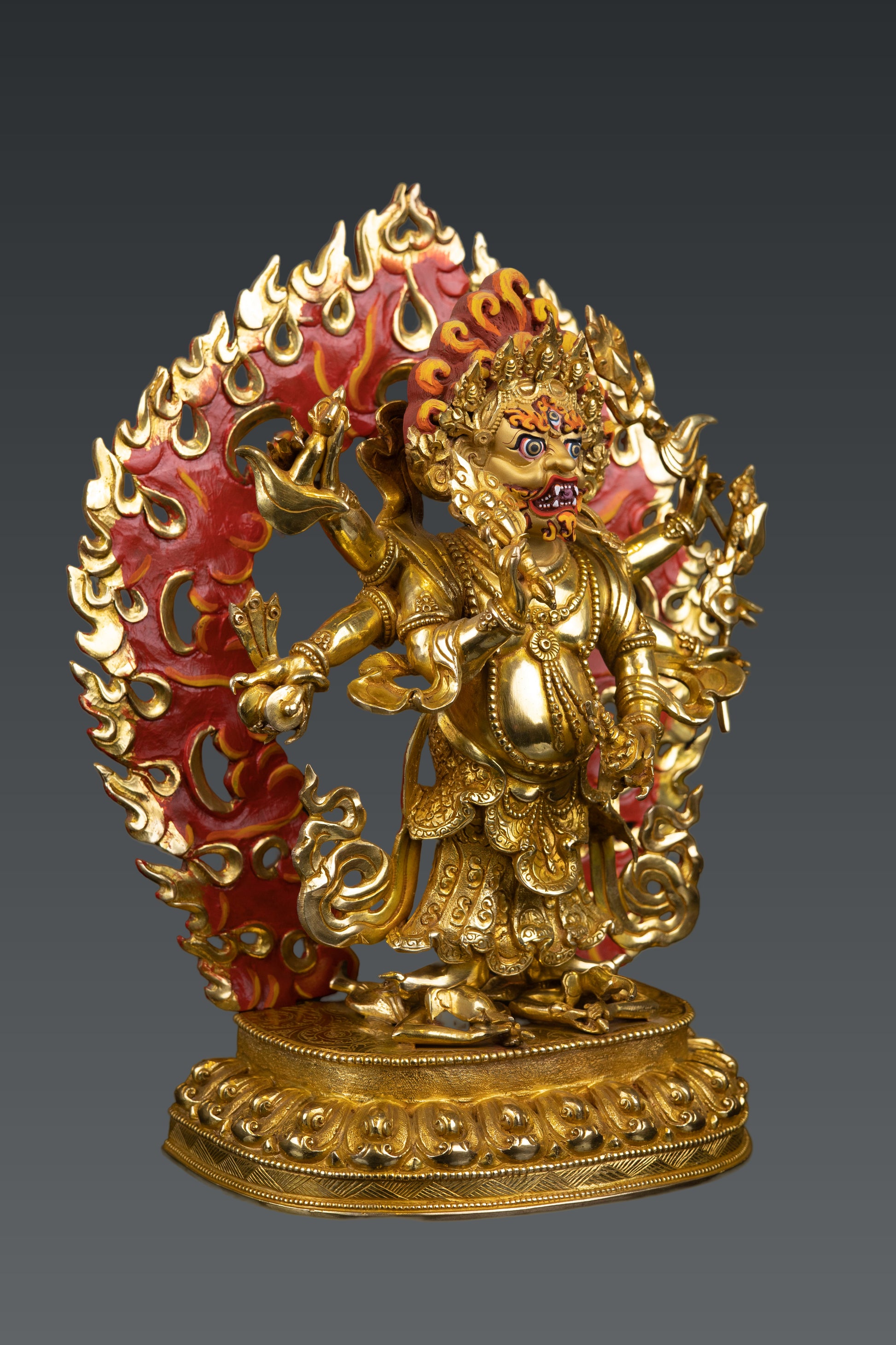 This Beautiful Handmade Hand craved Tibetan Buddhism Wrathful 24K Gold Face Hand Painting God White Mahakala Bhairav Full Body Gold Plated Pure Copper Statue made by Artists of Nepal.