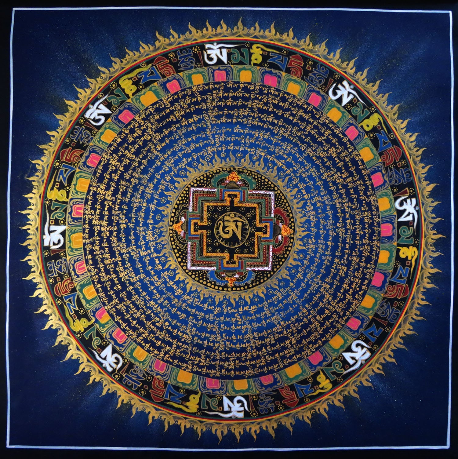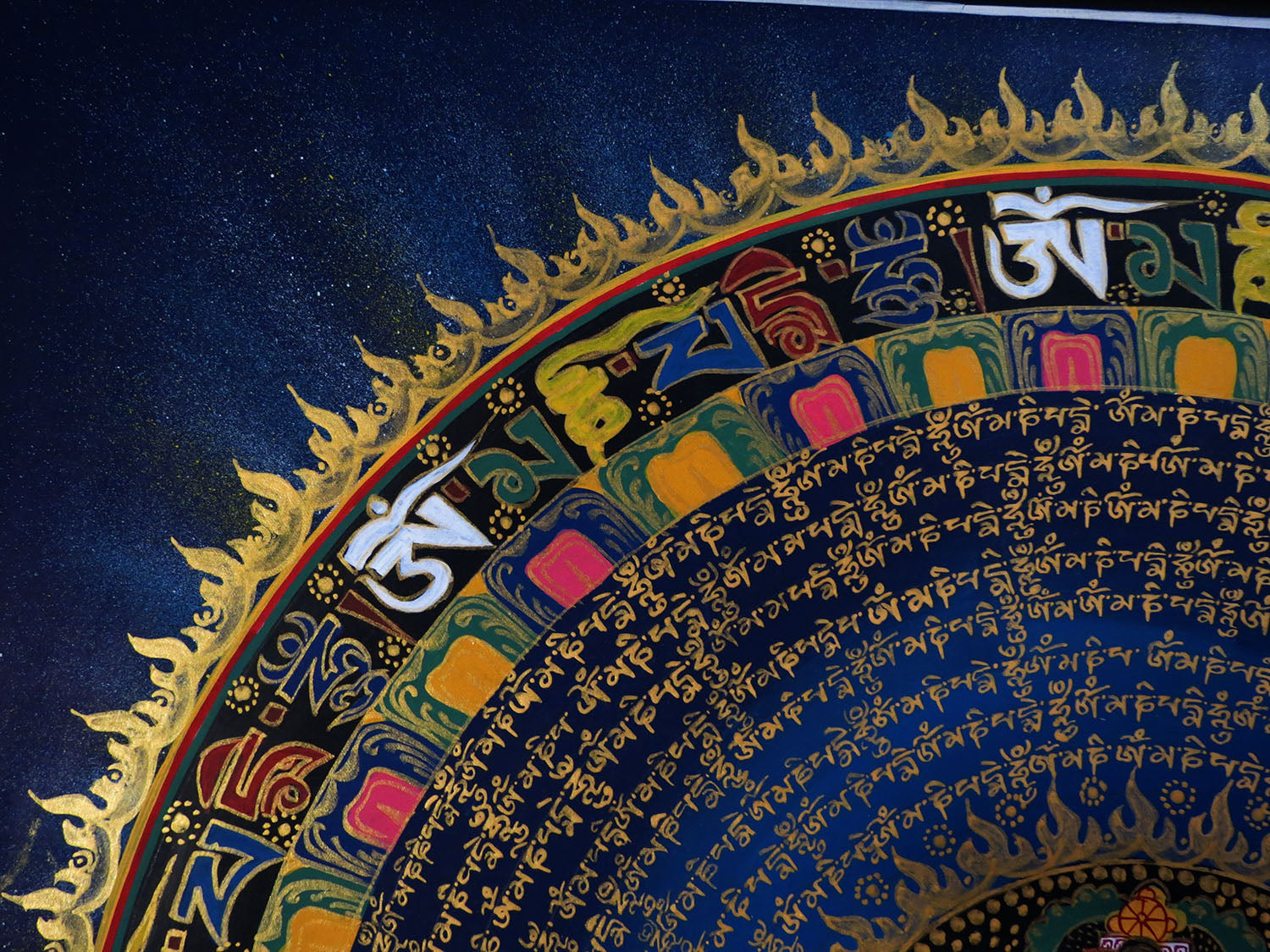 Tibetan Buddhism Om Mani Padme Hum Mantra Mandala Lama Handwritten Painting Thangka Art Nepal free