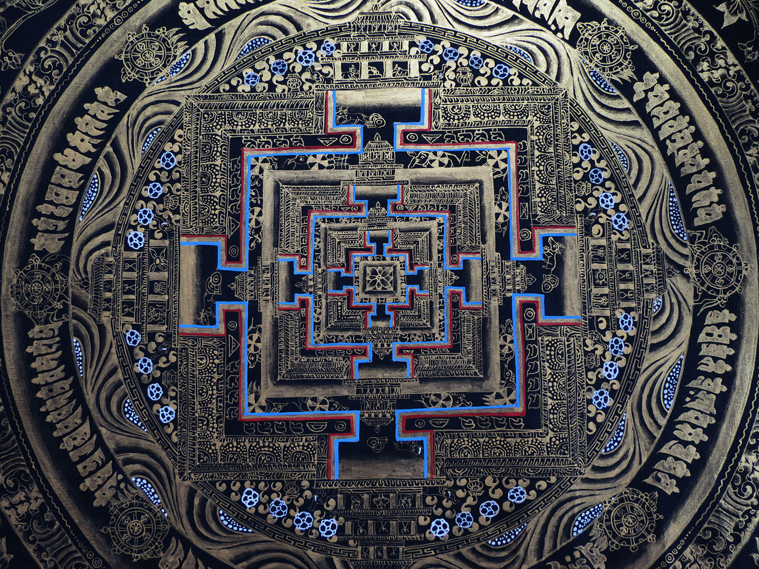 Tibetan Buddhism Ritual Kalachakra Mandala Tantra Thangka Hand Painting Art Black free