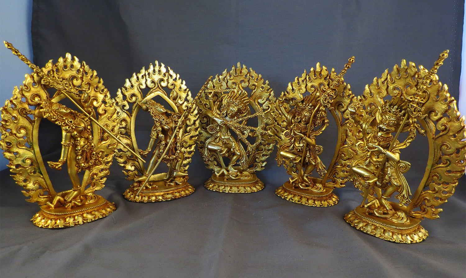This Beautiful Handmade Hand Craved Tibetan Buddhism Goddess Set of 5 Yogini Dakini Full Body Gold Plated Copper Statue made in Nepal.
