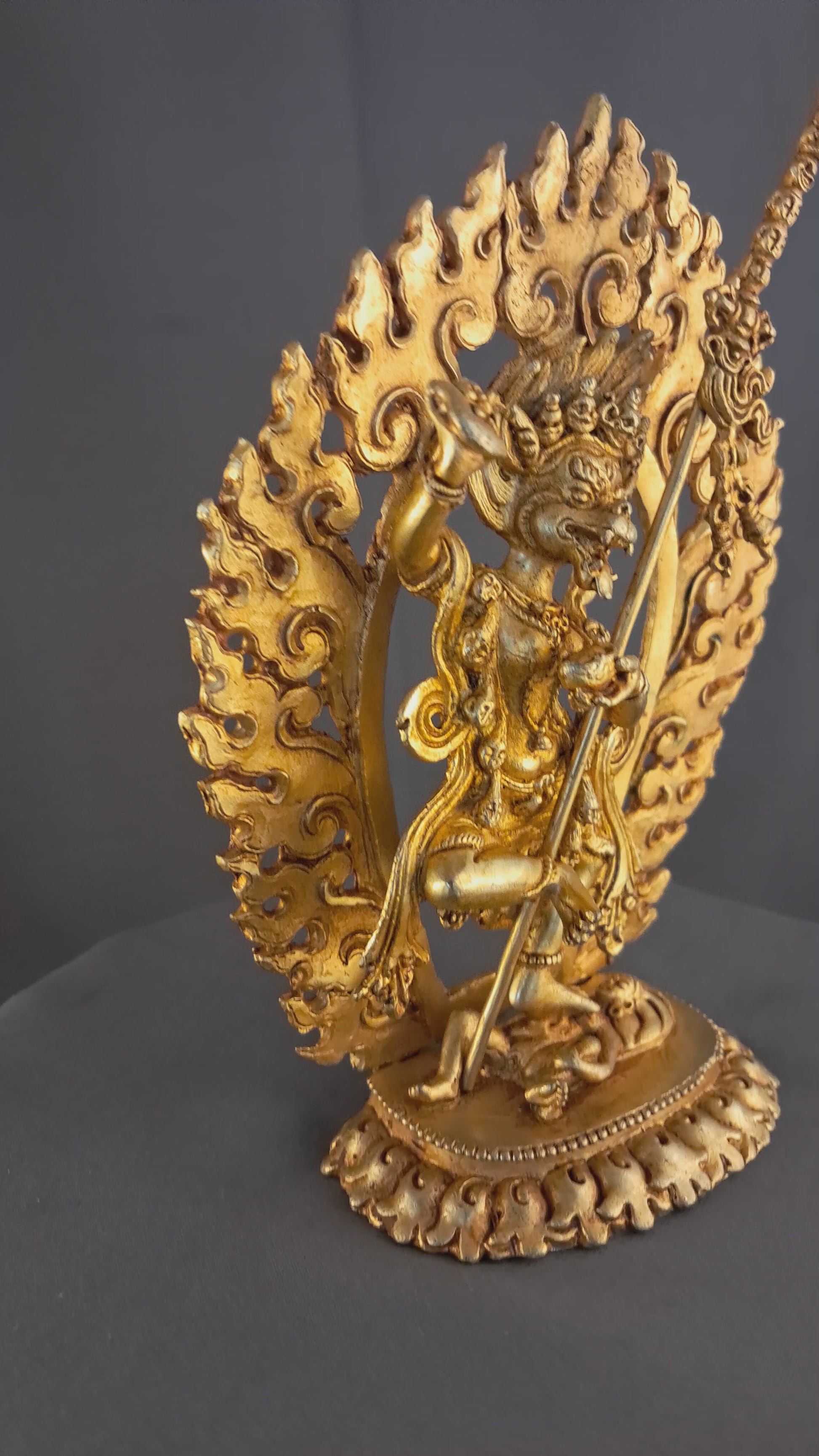 This Beautiful Handmade Hand craved Tibetan Buddhism Singha Mukhi Dakini Full Body Gold Plated Copper Statue made by Artists of Nepal.