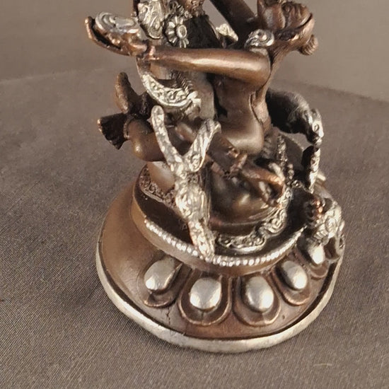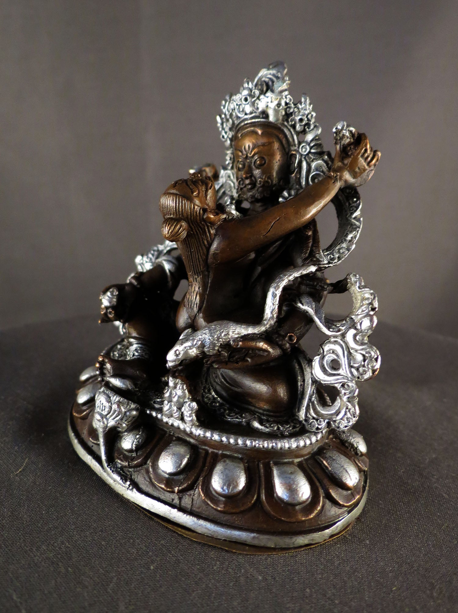 This Beautiful Handmade Tibetan Buddhism Wealth God Zambala Jambala with Consort Silver Oxide Copper Statue made in Nepal.