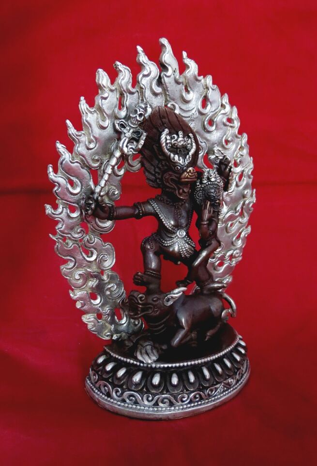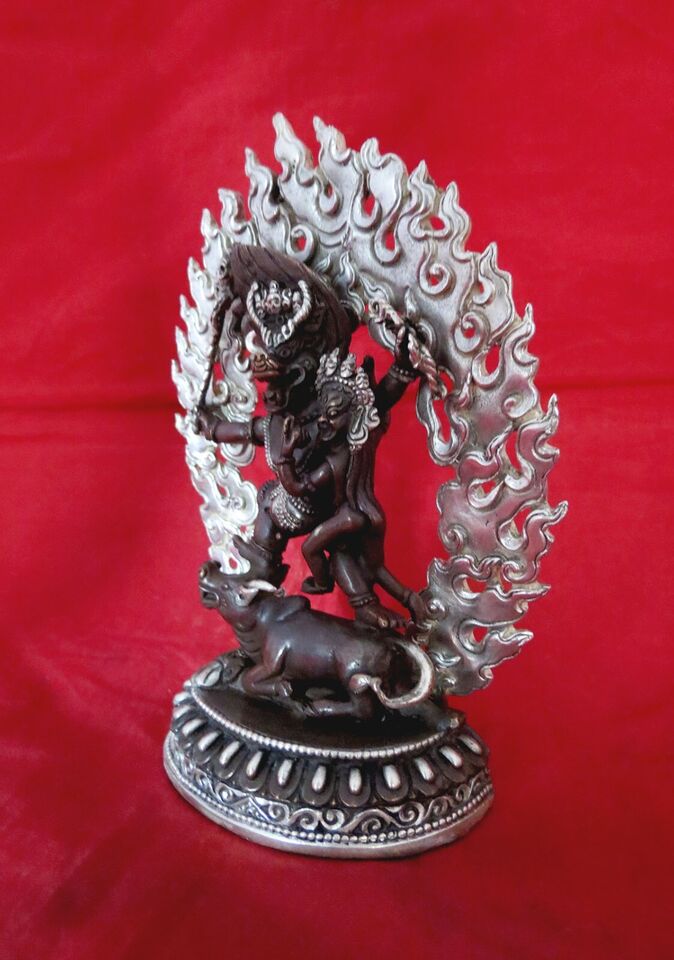 This Beautiful Finest Handmade Tibetan Buddhism Protecter God Yamantaka Copper Oxide Silver Plated Statue made in Nepal.