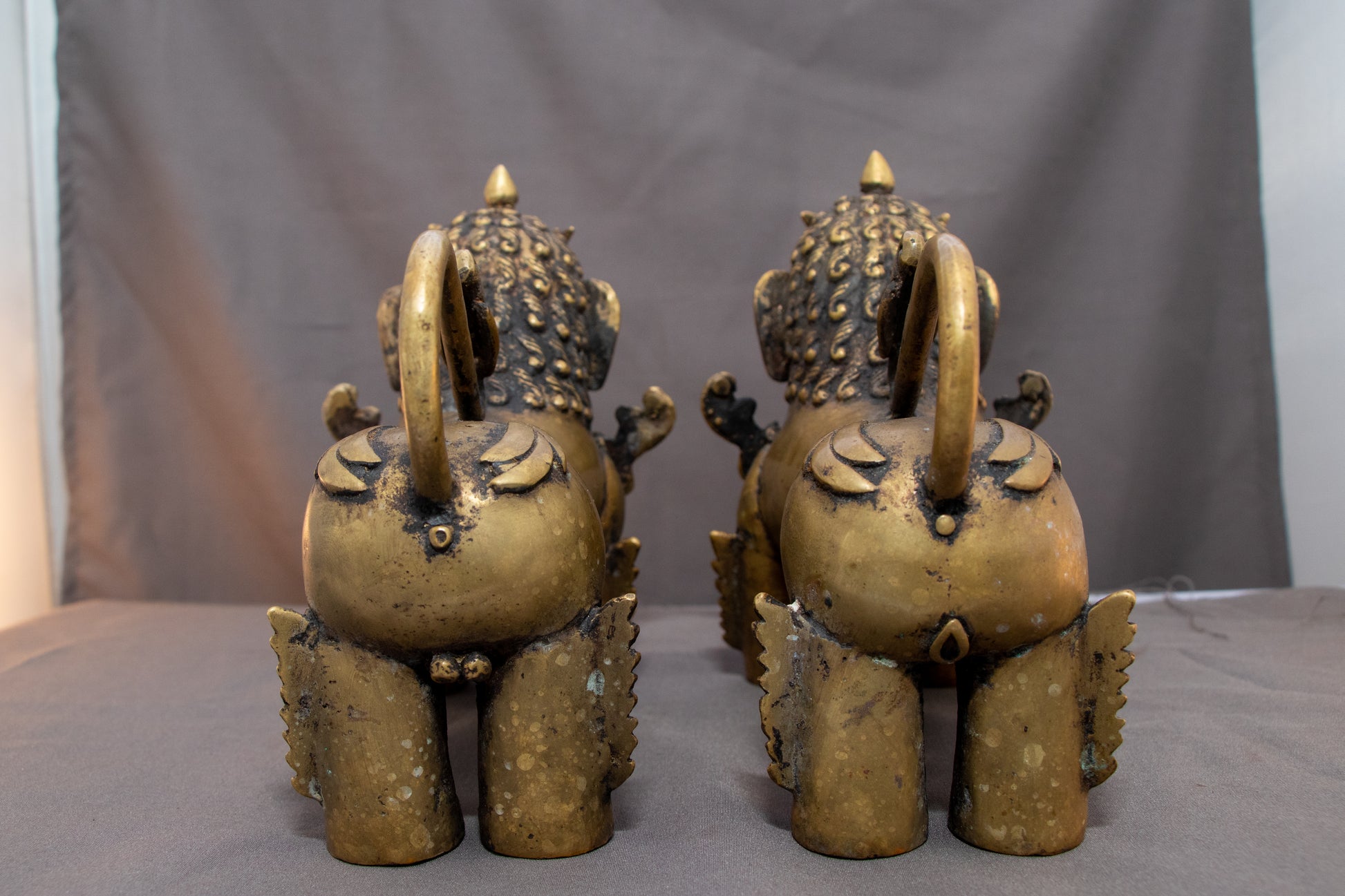 Tibetan Pair of Lion Feng Shui Lions Foo Fu Dog Guardian Singha Brass Figure Sculpture Statue free