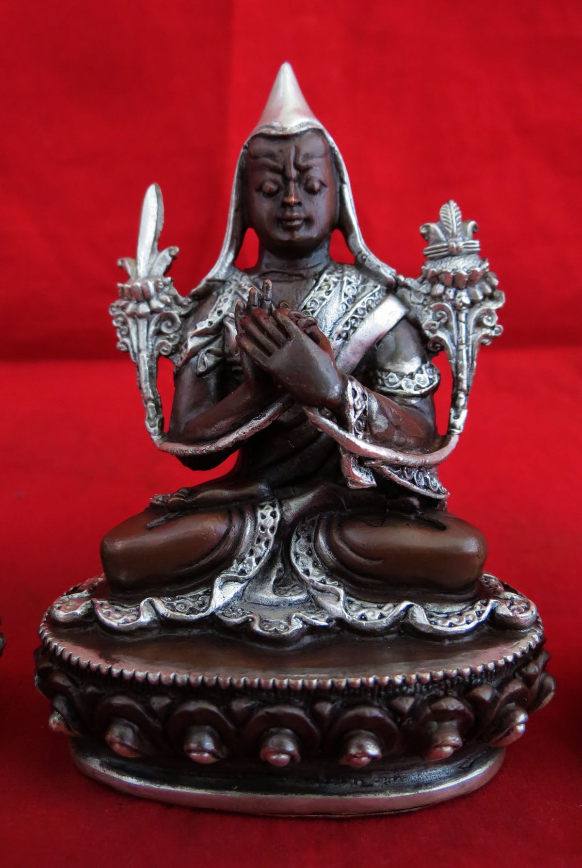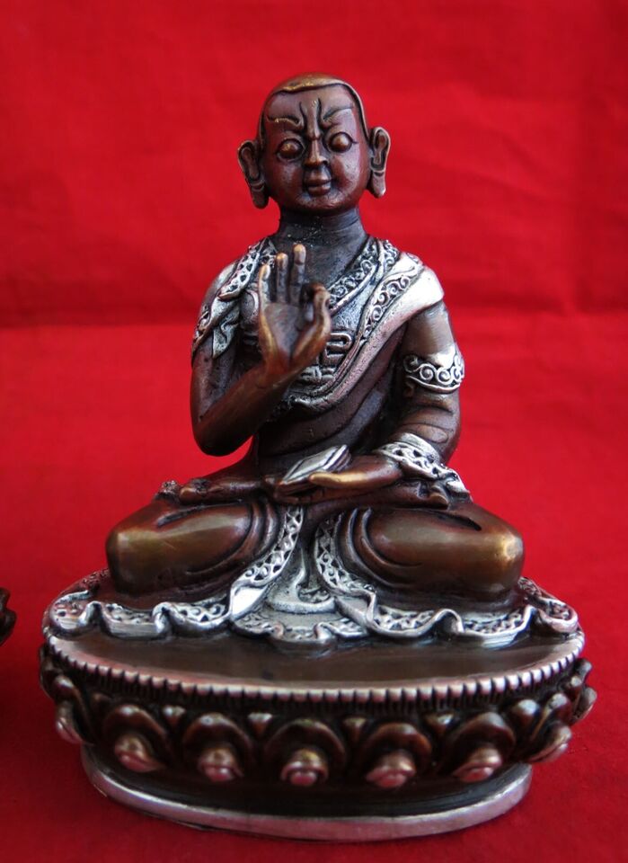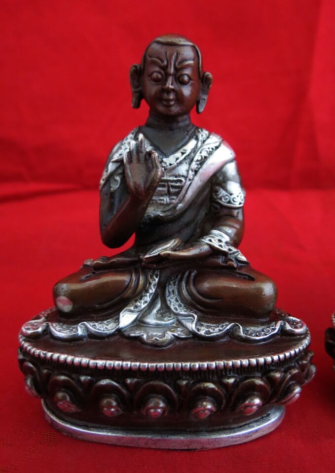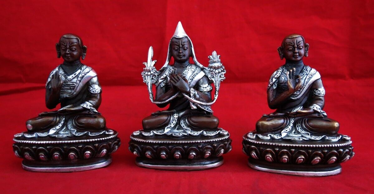 Tibetan Set of Tsongkhapa Silver Plated Oxide Fine 3.5" Copper Handmade Statue Figure Nepal