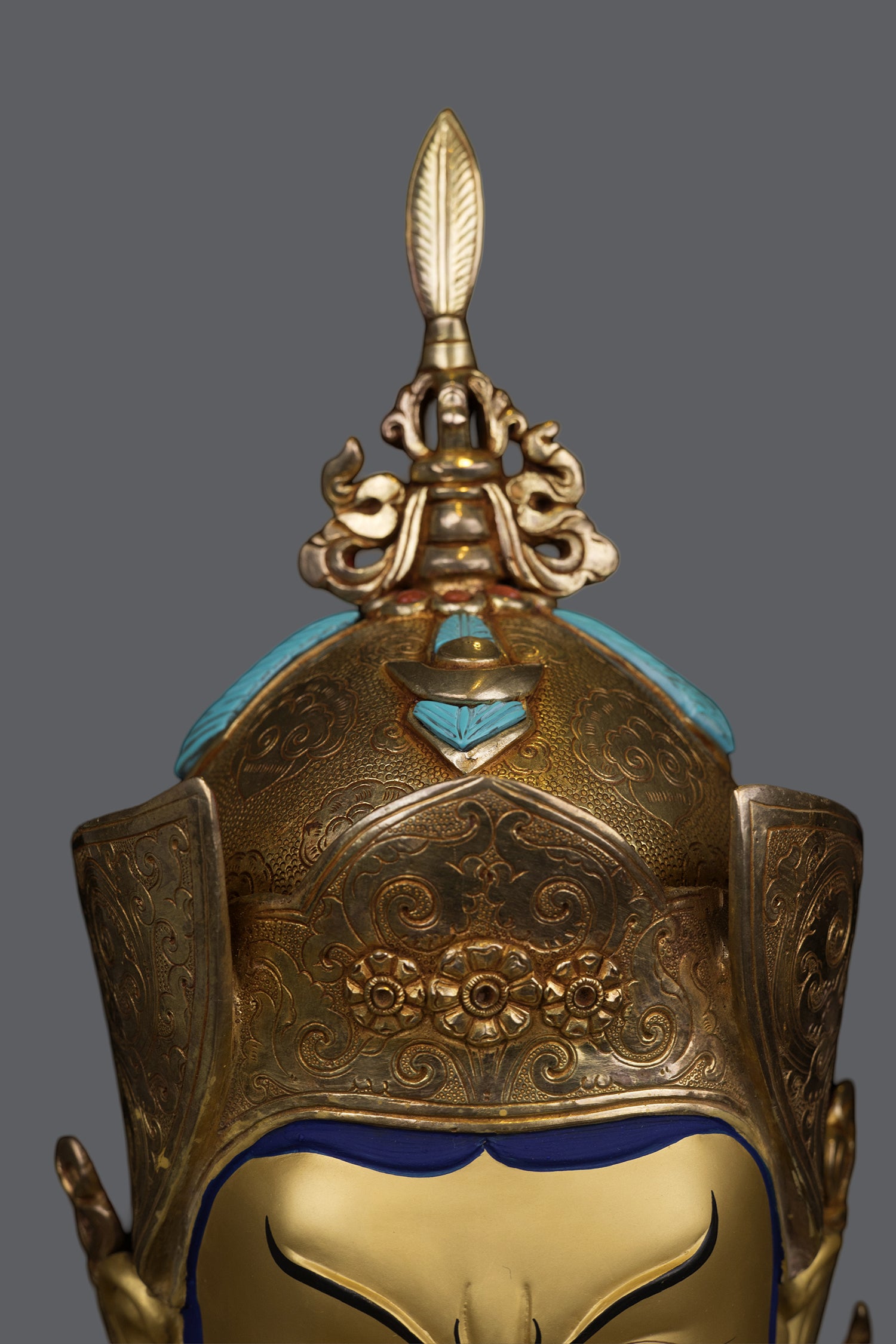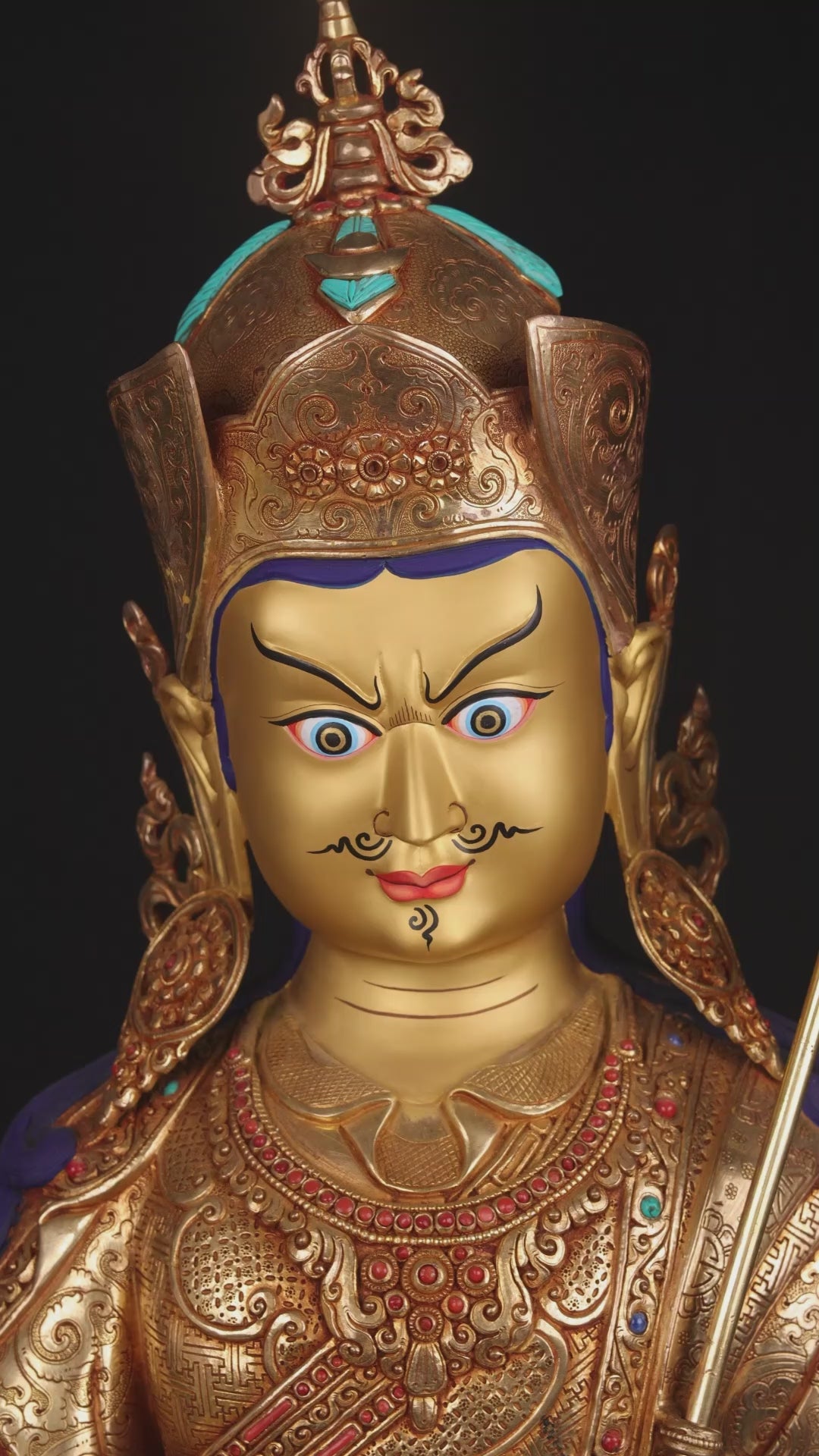 Unique 24K Gold Face Hand Painting Tibetan Buddhism Guru Rinpoche Padmasambhava Pure Copper Statue Sculpture Figure Nepal free