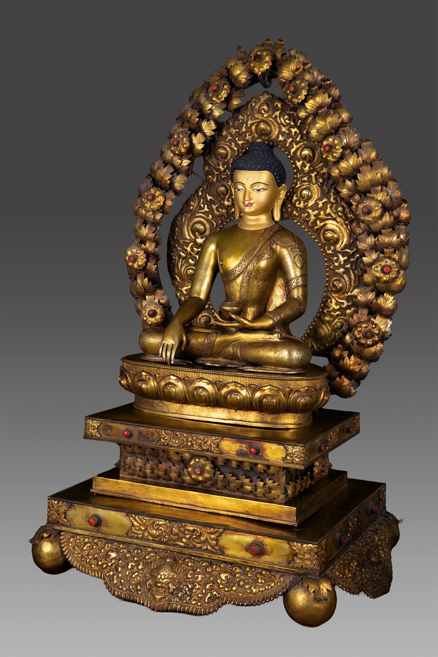 Unique Masterpiece Lord Shakyamuni Buddha Rare Copper Gold Plated Statue Sculpture Figure Nepal free 25