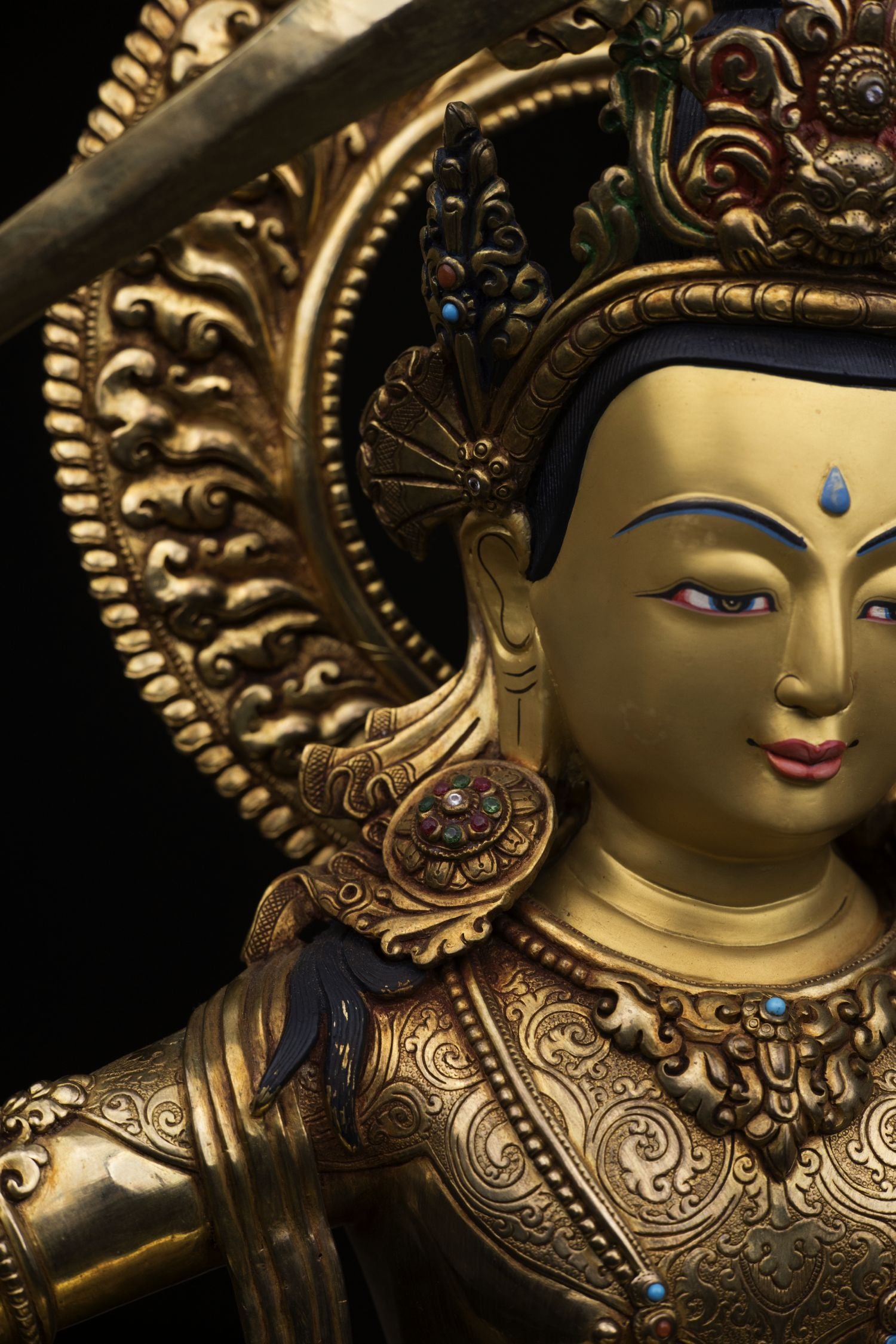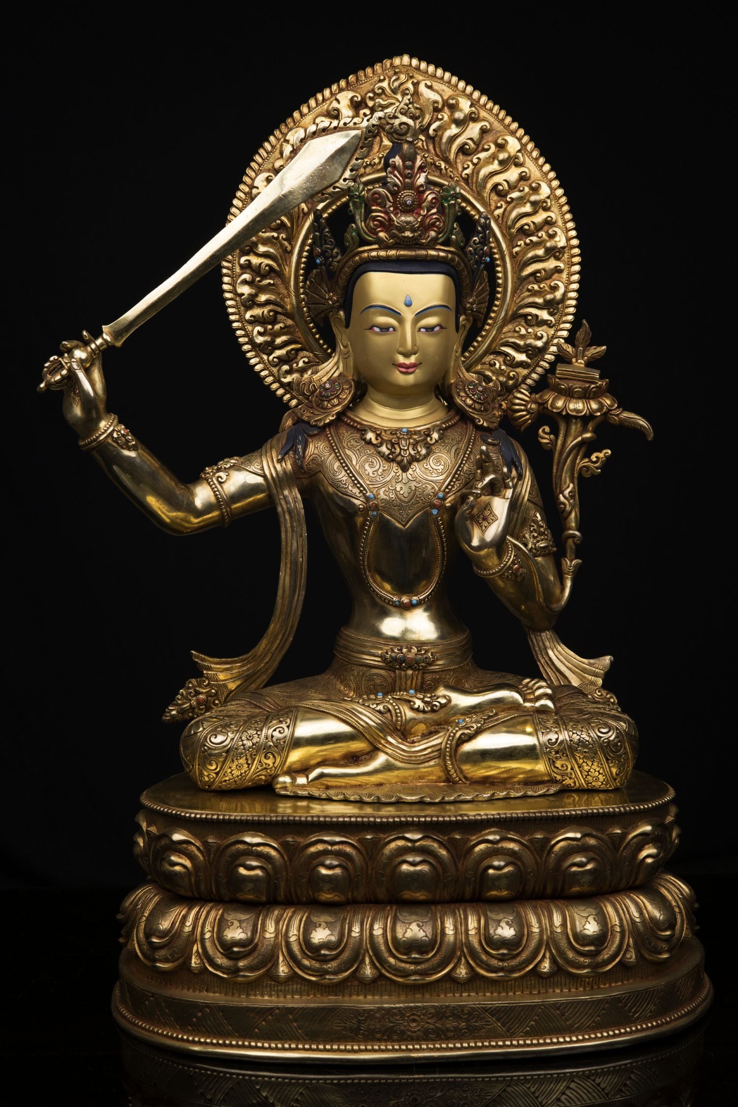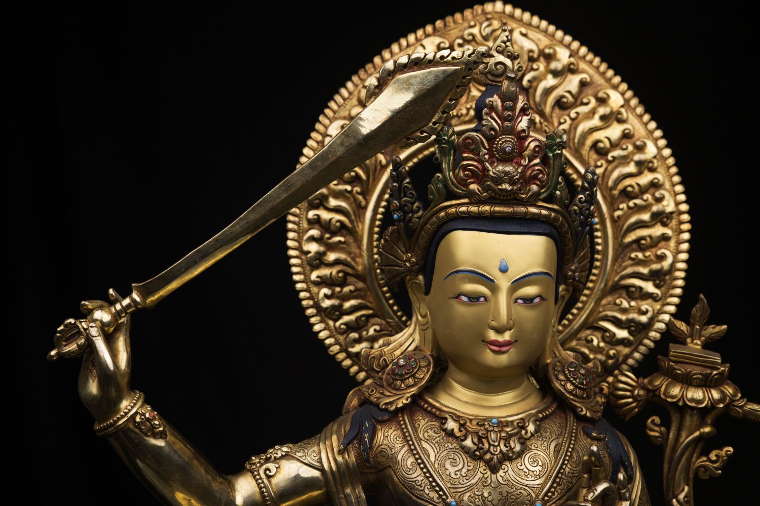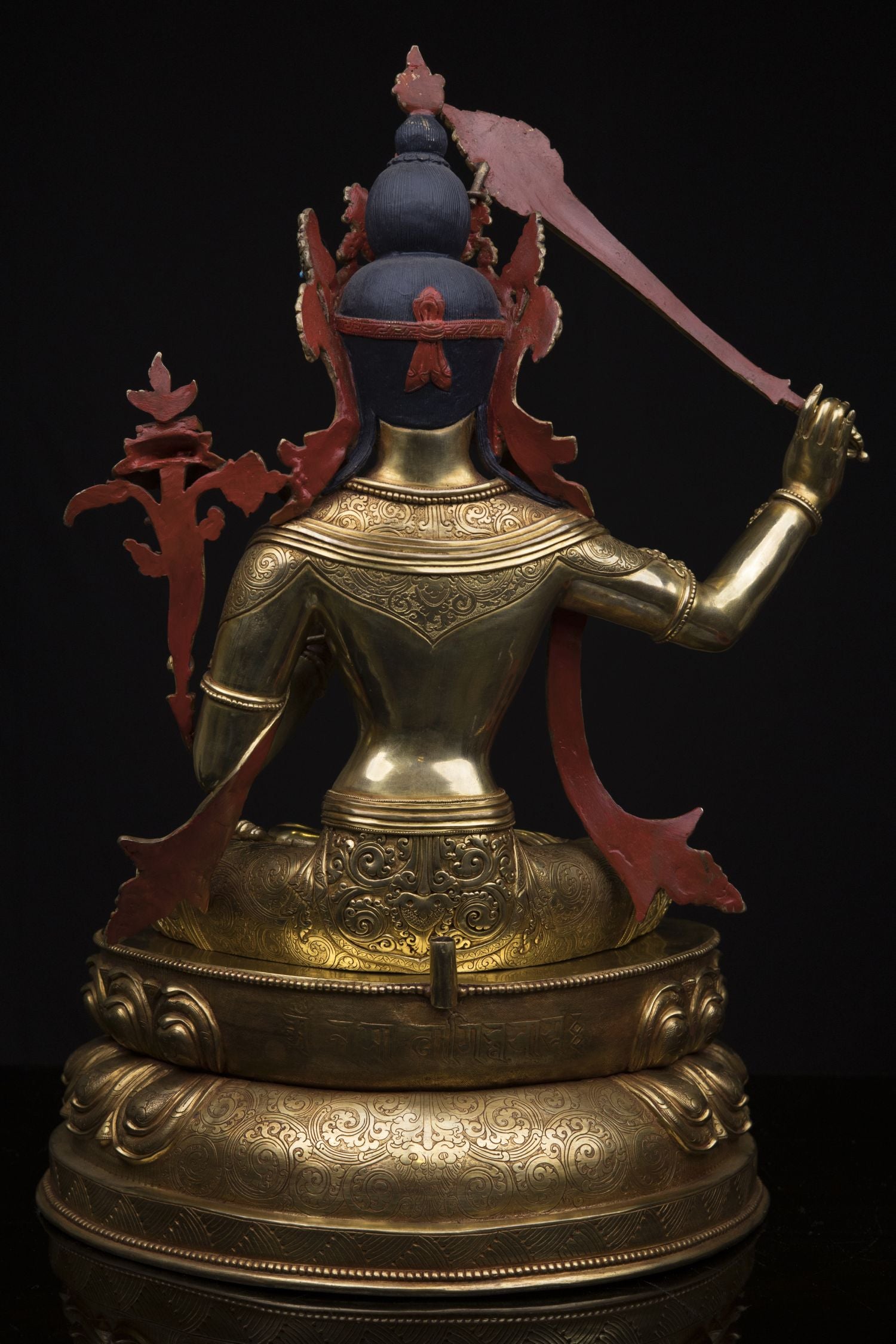 This Beautiful Unique Handmade Hand Craved Tibetan Buddhism Lord Maha Manjushri Pure Gold Plated Pure Copper Statue made by Artists of Nepal.