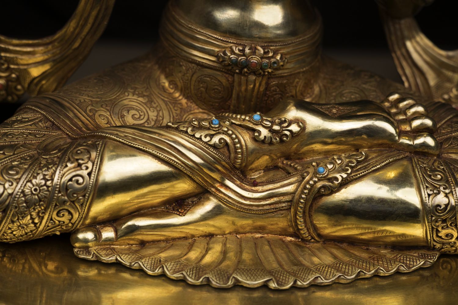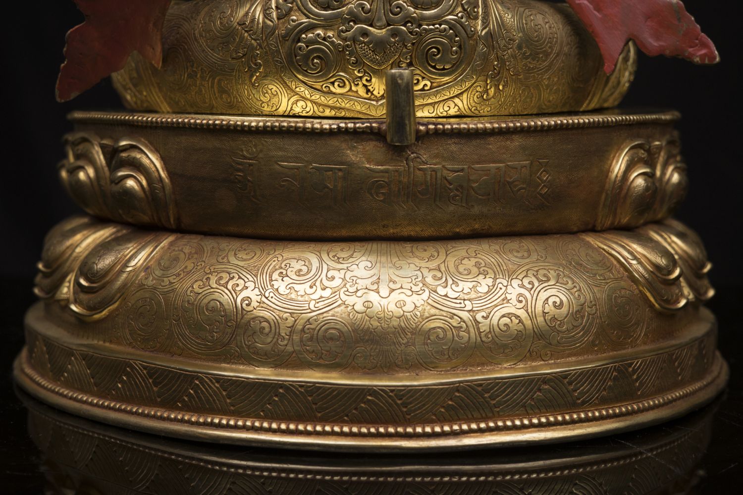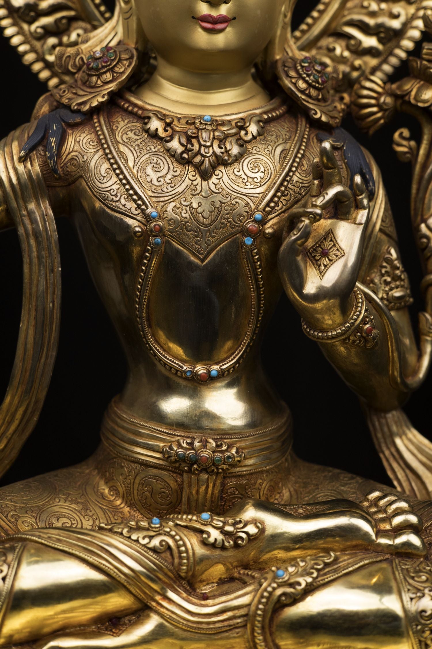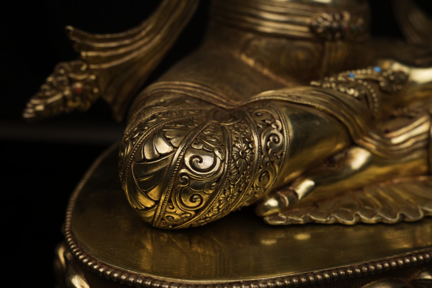 This Beautiful Unique Handmade Hand Craved Tibetan Buddhism Lord Maha Manjushri Pure Gold Plated Pure Copper Statue made by Artists of Nepal.
