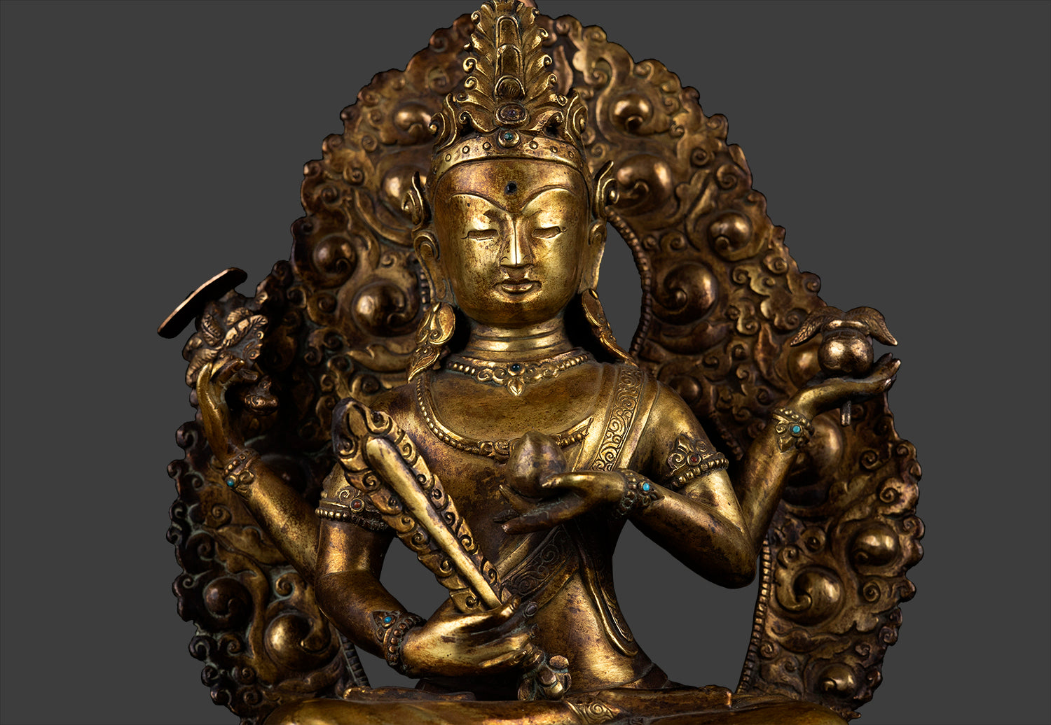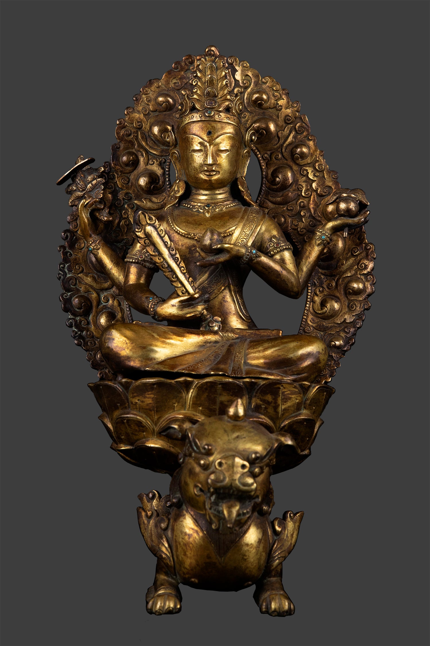 This Beautiful Handmade Hand craved Unique Vintage Tibetan Buddhism Goddess Wangchok Terwai Drolma Whole Body 24K Gold Plated Copper Statue mane by artists of Nepal.
