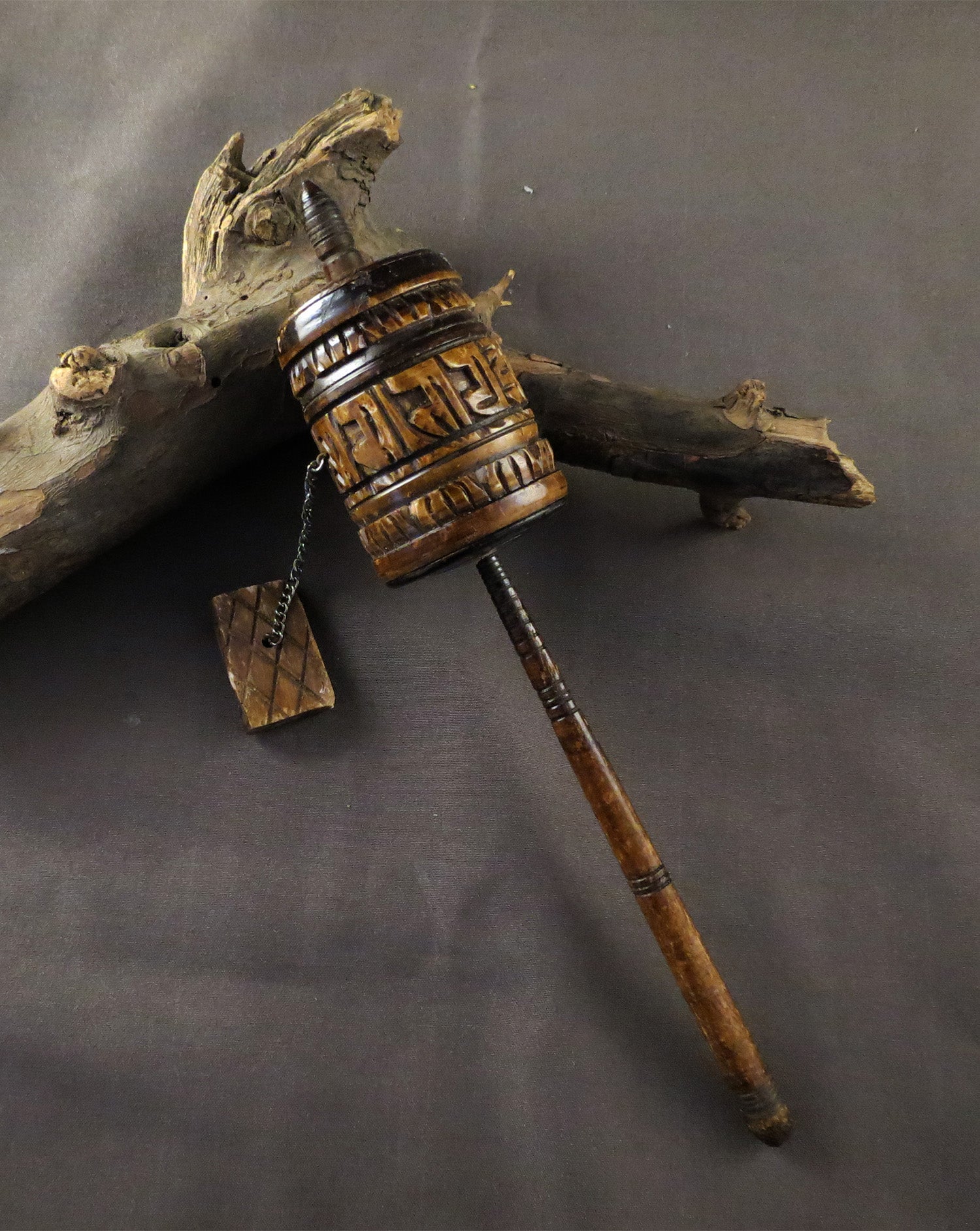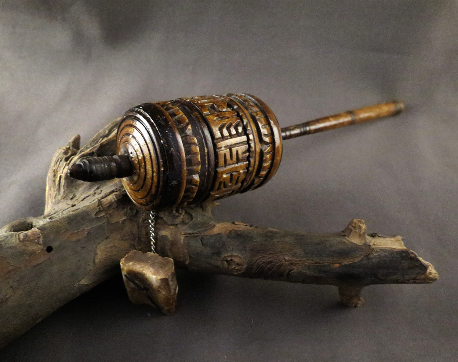 Vintage Tibetan Buddhist Ritual Altar, Om Mani Padme Hum Mantra, Hand Craved Water Buffalo Bone Prayer Wheel